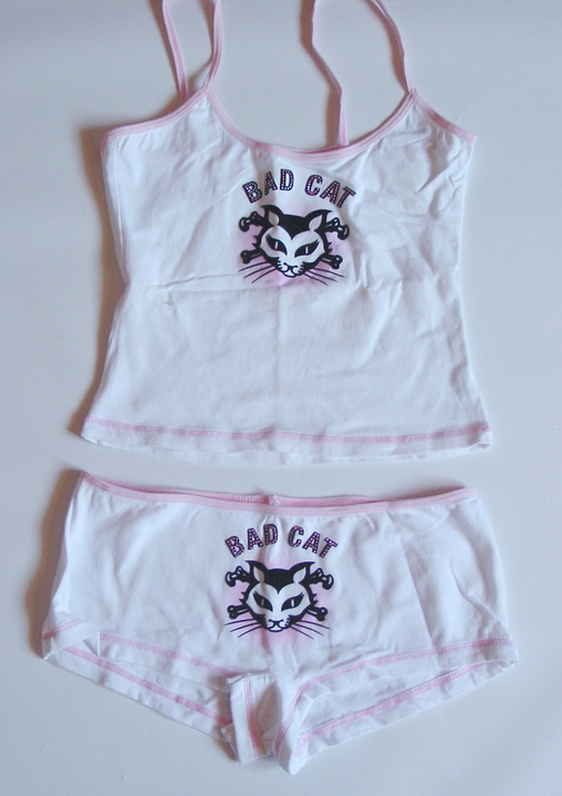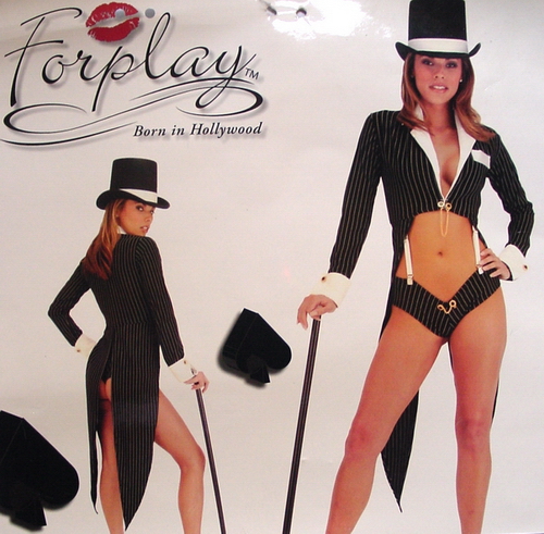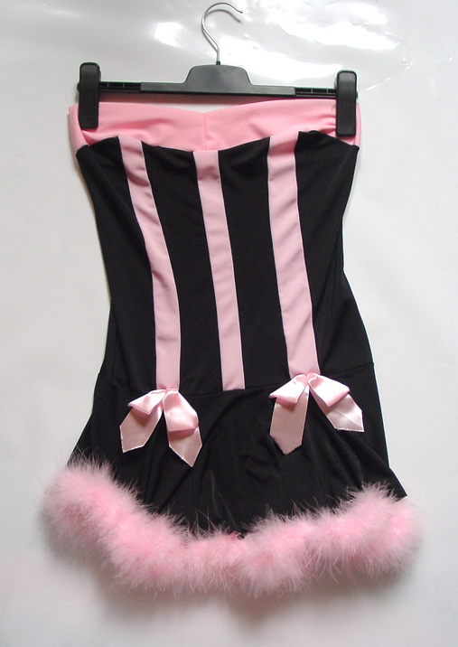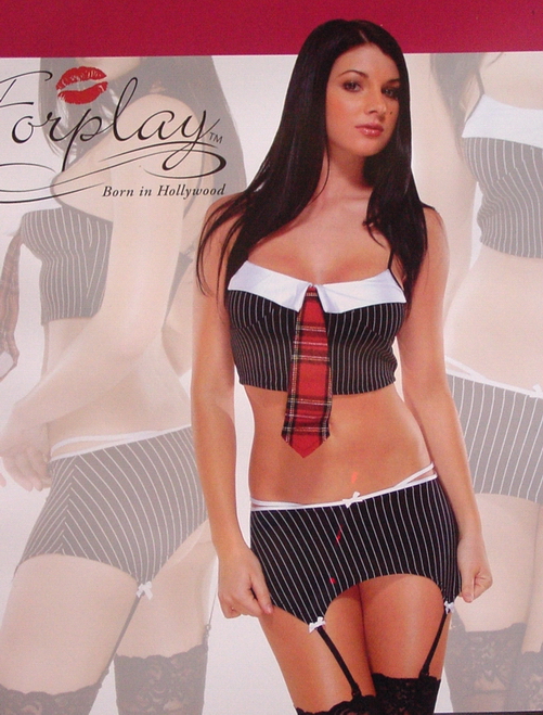 2tlges Outfit, Nadelstreifen, Top + Unterteil mit Strümpfehaltern, Größe S/M