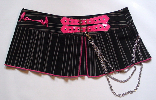 Rock, pink/schwarz mit Nadelstreifen + Kette, Größe S/M