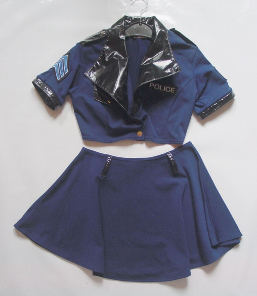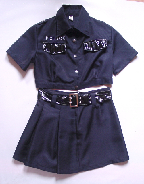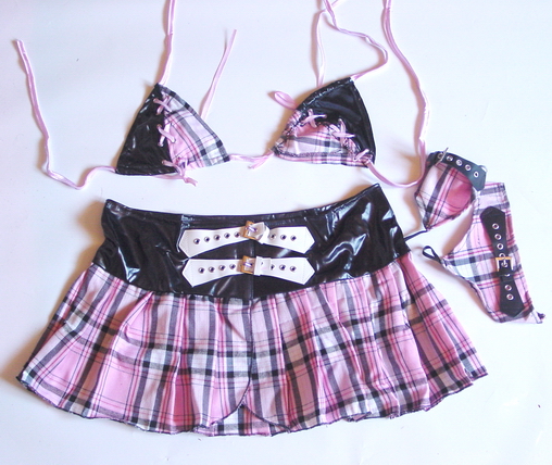 Police Outfit, pink/schwarz, 3 tlg. Rock, Oberteil, Krawatte, Größe S/M