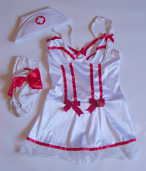 Schwestern Outfit, 3 tlg. Haube, Strümpfe, Kleid