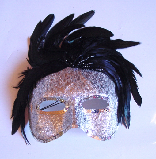 Maske, silber mit Federn