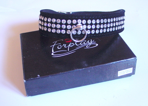 Lederhalsband schwarz, mit Straß und O-Ring