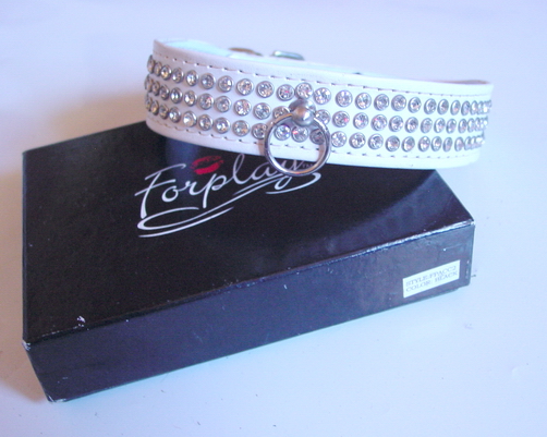 Lederhalsband weiß, mit Strß und O-Ring